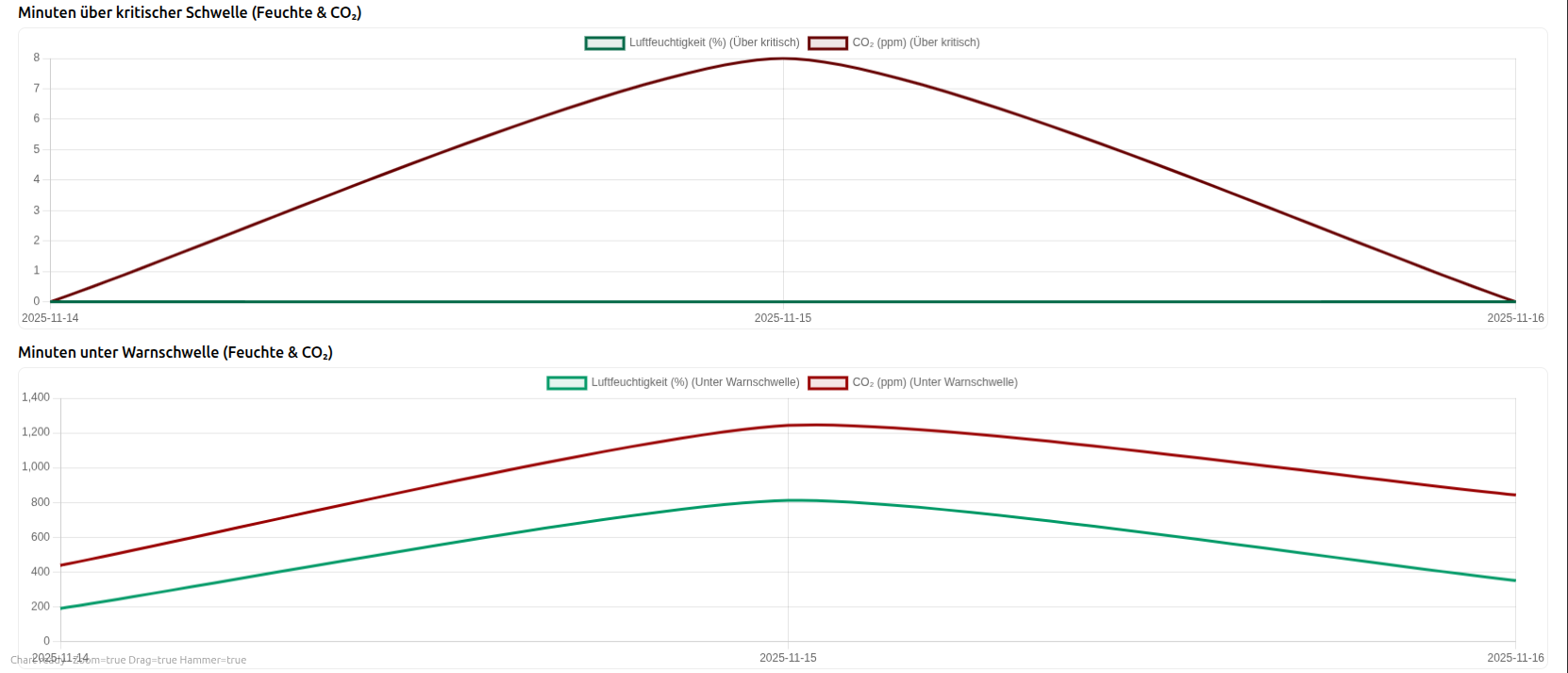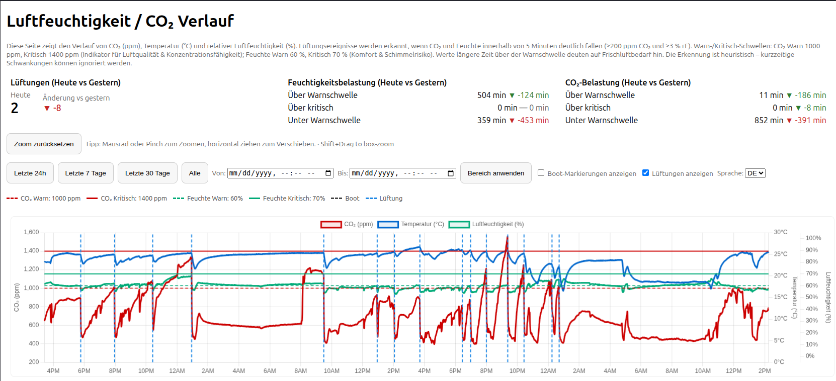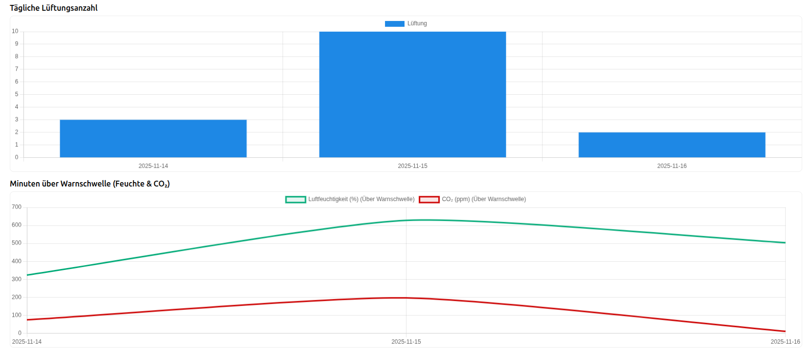 | Sehr hoch (> 75 %) | Hohe Feuchte + schlechte Belüftung = erhebliche Gesundheits- und Gebäuderisiken (Schimmel, Atemwegserkrankungen). |